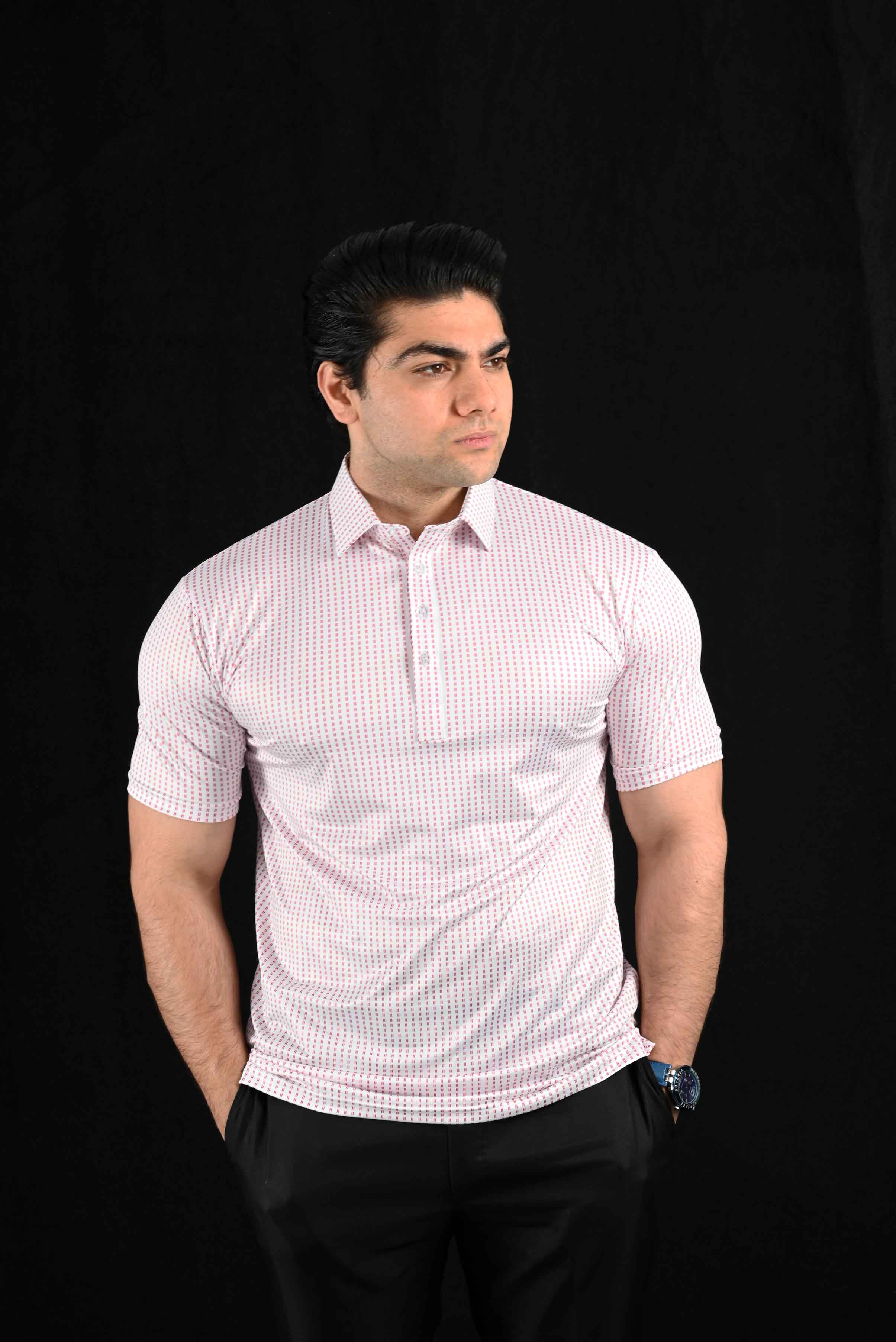 Elevate your wardrobe with the Maroon Micro Dashes Polo Shirt, a stylish and reliable choice for men who appreciate the sophistication of a polished appearance without sacrificing durability. With its deep, refined maroon color, this polo shirt delivers more than just a sharp, formal look—it offers long-lasting performance that resists fading and distortion, no matter how many times you wear it.