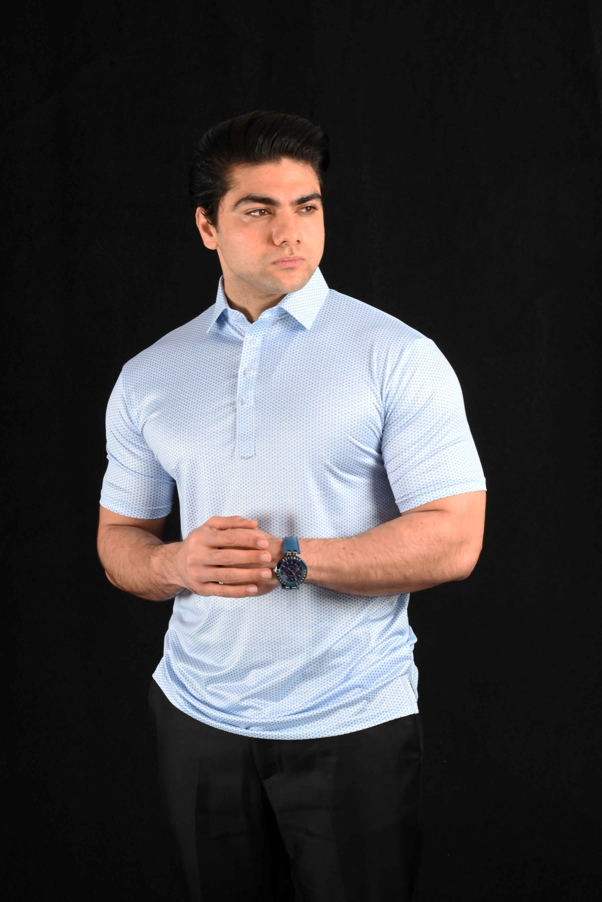 Experience the perfect blend of comfort and sophistication with our Micro Geometry light blue Collar Polo Shirt. Crafted for those who demand style without compromising on ease, this shirt is your go-to for any occasion. Whether you're heading to the office or out for a casual evening, the structured collar and breathable fabric ensure you look sharp and feel great all day long.