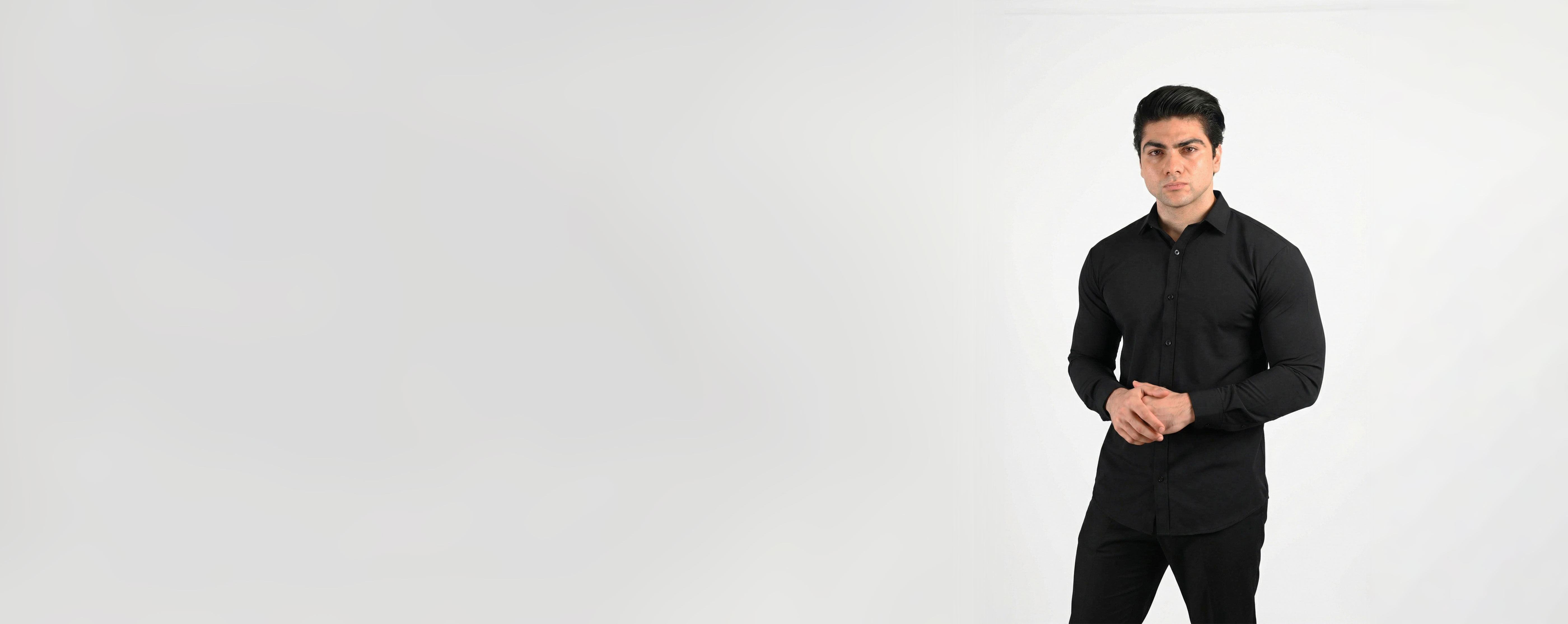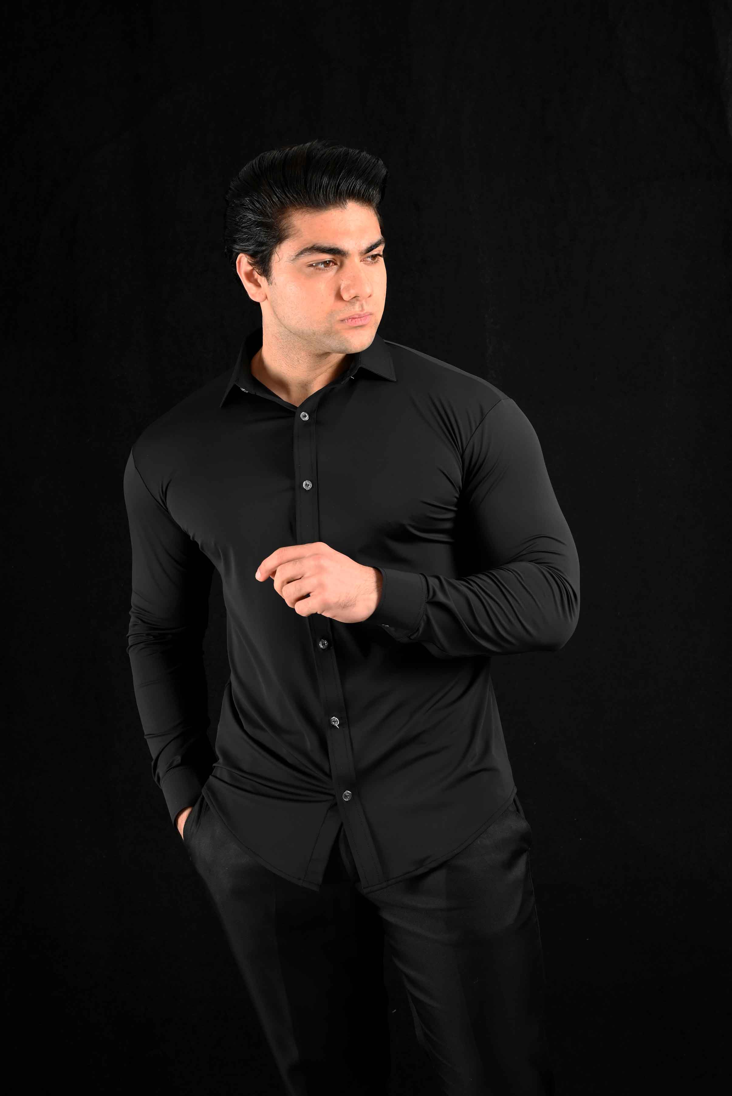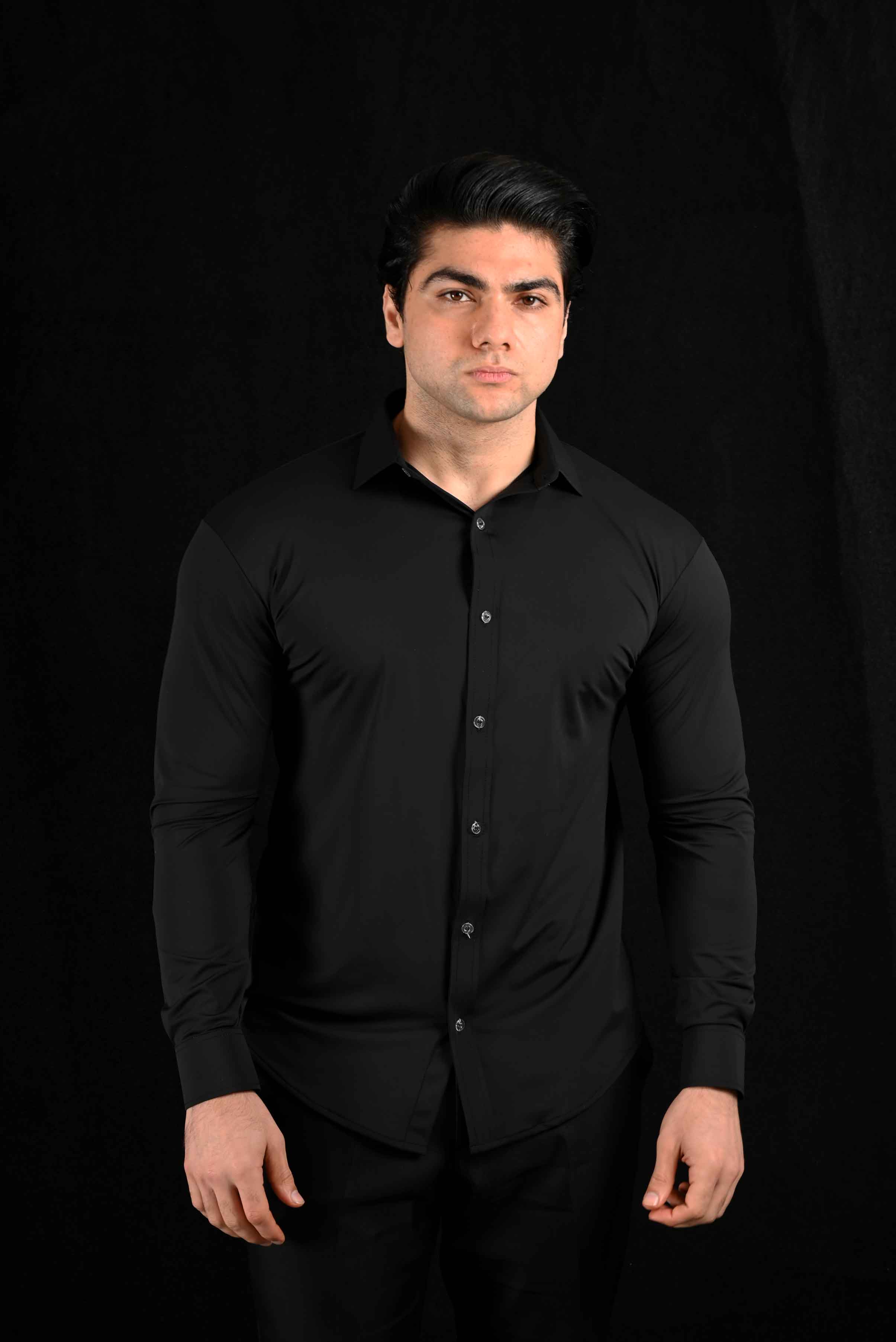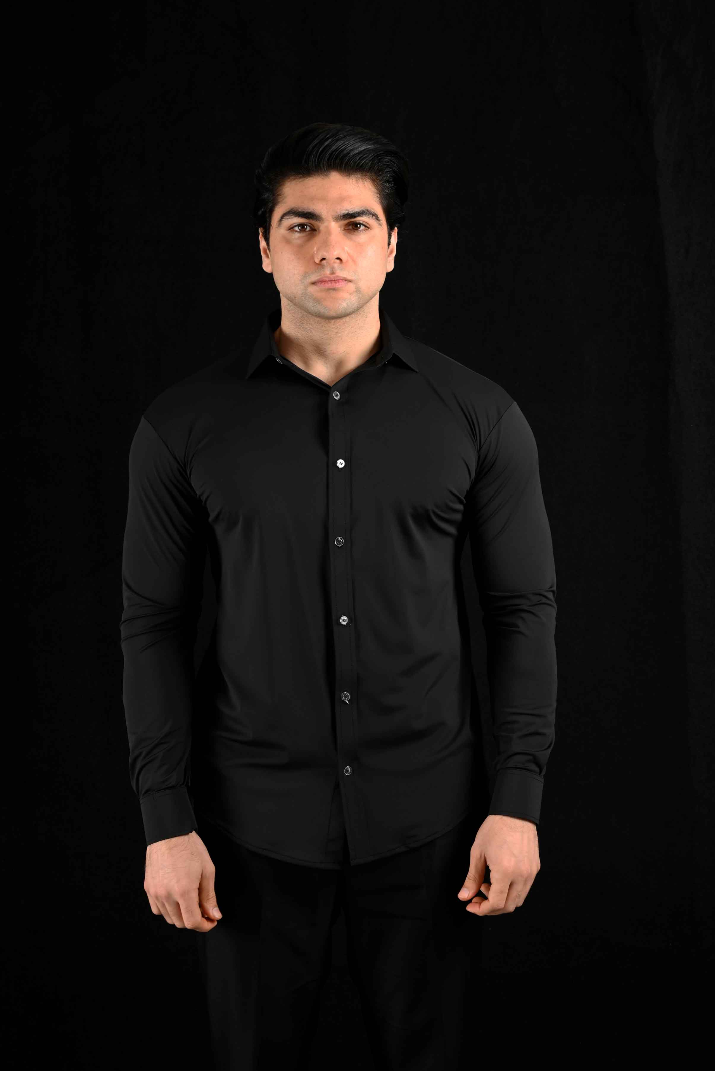 The deep, neutral black color is a wardrobe staple, effortlessly pairing with a variety of looks. It pairs well with tailored trousers for a polished, professional appearance or with jeans for a casual yet elevated look. The Performance Black Shirt offers versatility, durability, and comfort—everything you need from your everyday wardrobe.