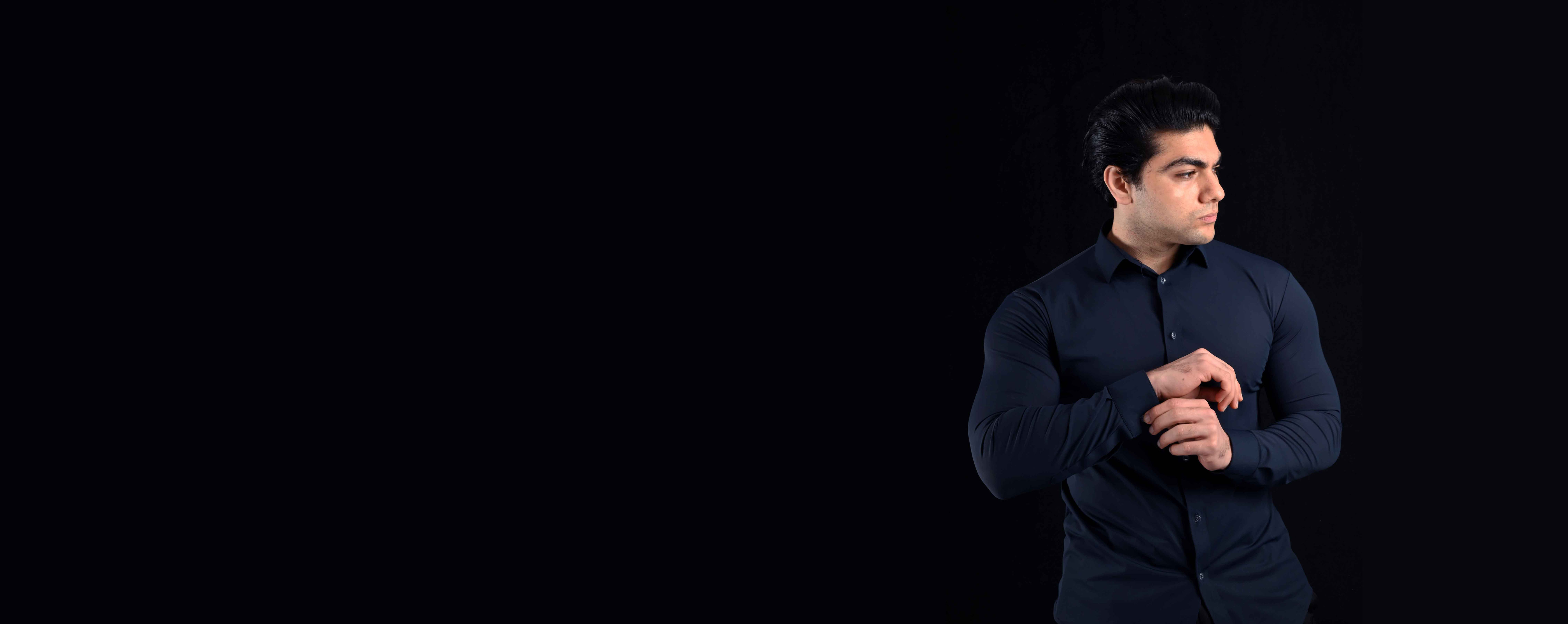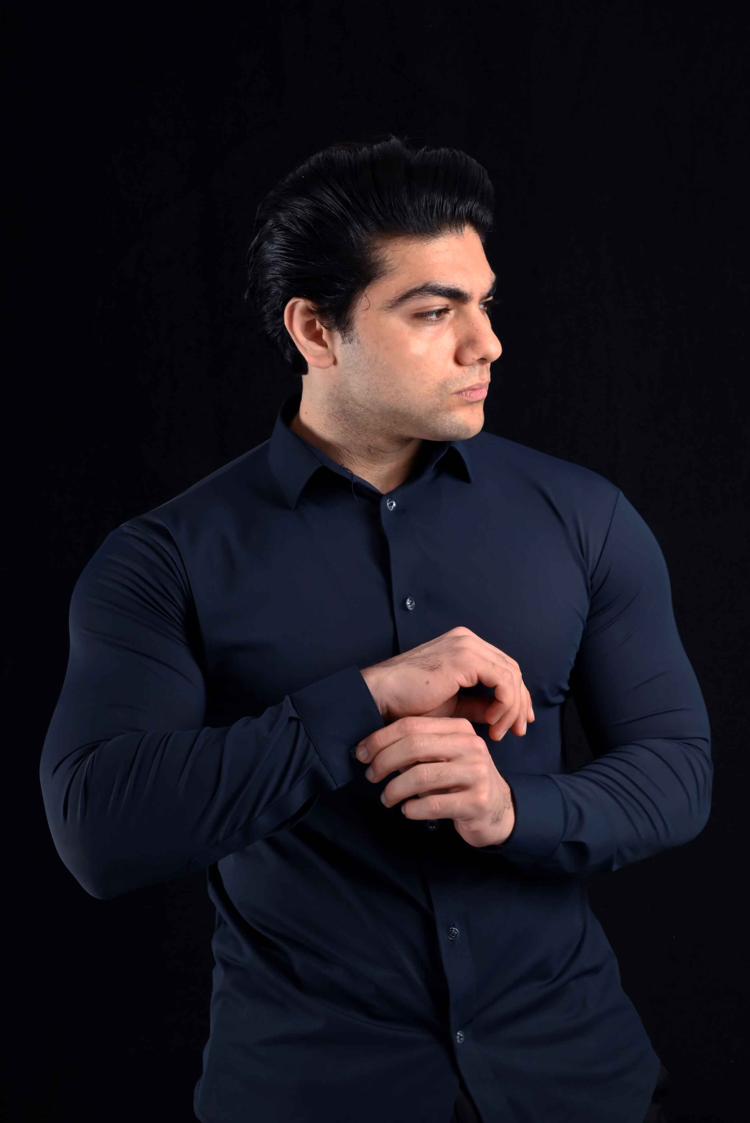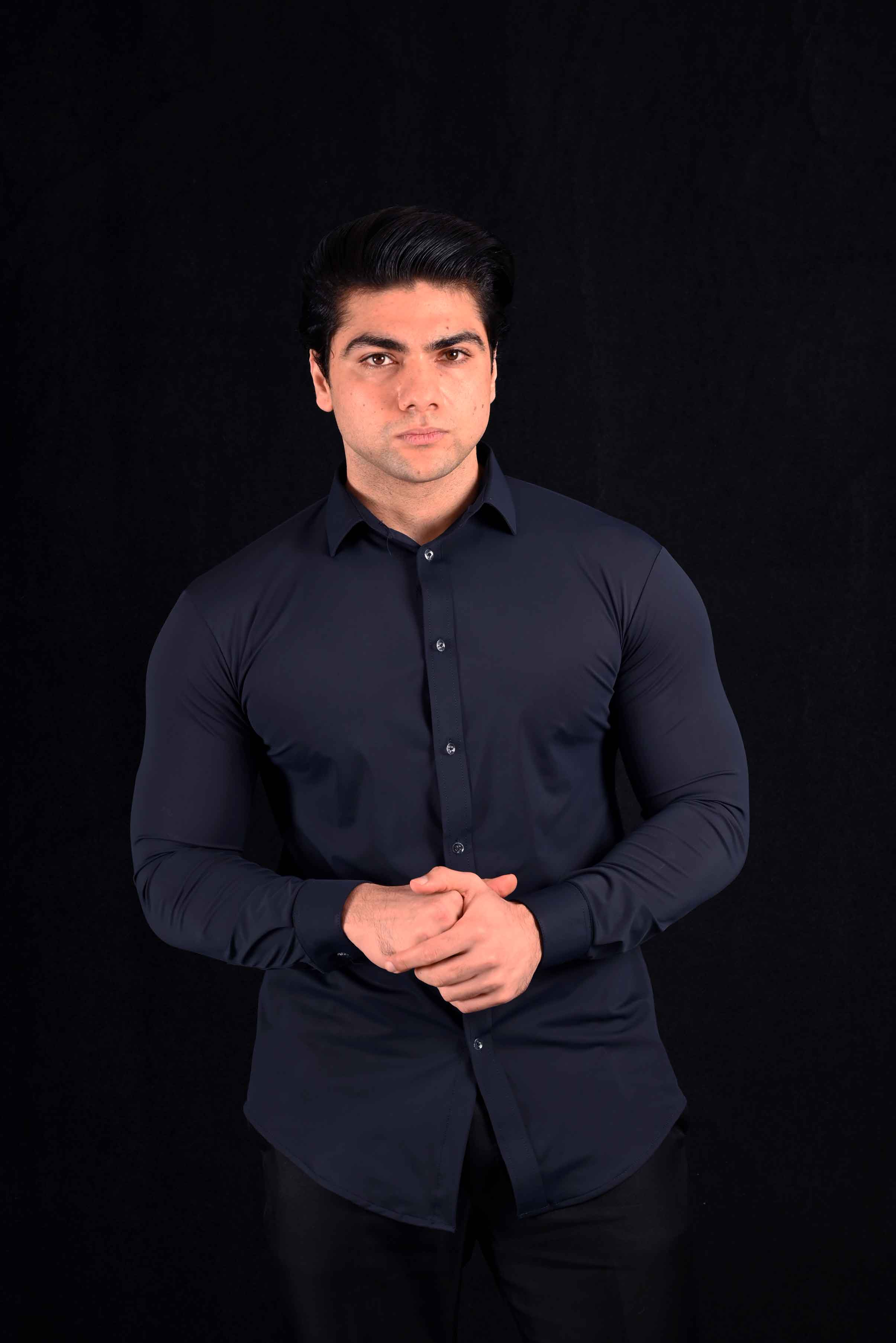 This shirt’s sleek navy color provides a refined aesthetic that complements both casual and professional outfits. Pair it with a suit for a business-casual look, or dress it down with jeans for a more relaxed vibe. The Performance Navy Shirt is a wardrobe staple that transitions seamlessly between the office, the gym, or casual outings.